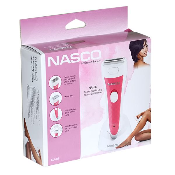 Cet épilateur NASCO rechargeable élimine efficacement les poils grâce à sa tête rotative. Léger et sans fil, il est pratique pour une épilation rapide à la maison.