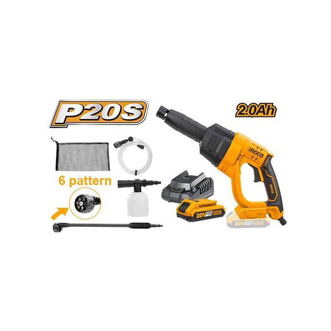 Le nettoyeur haute pression INGCO 20V sans fil offre une grande liberté de mouvement. Idéal pour laver voitures, terrasses ou outils, il combine praticité et puissance.