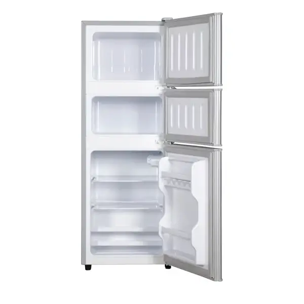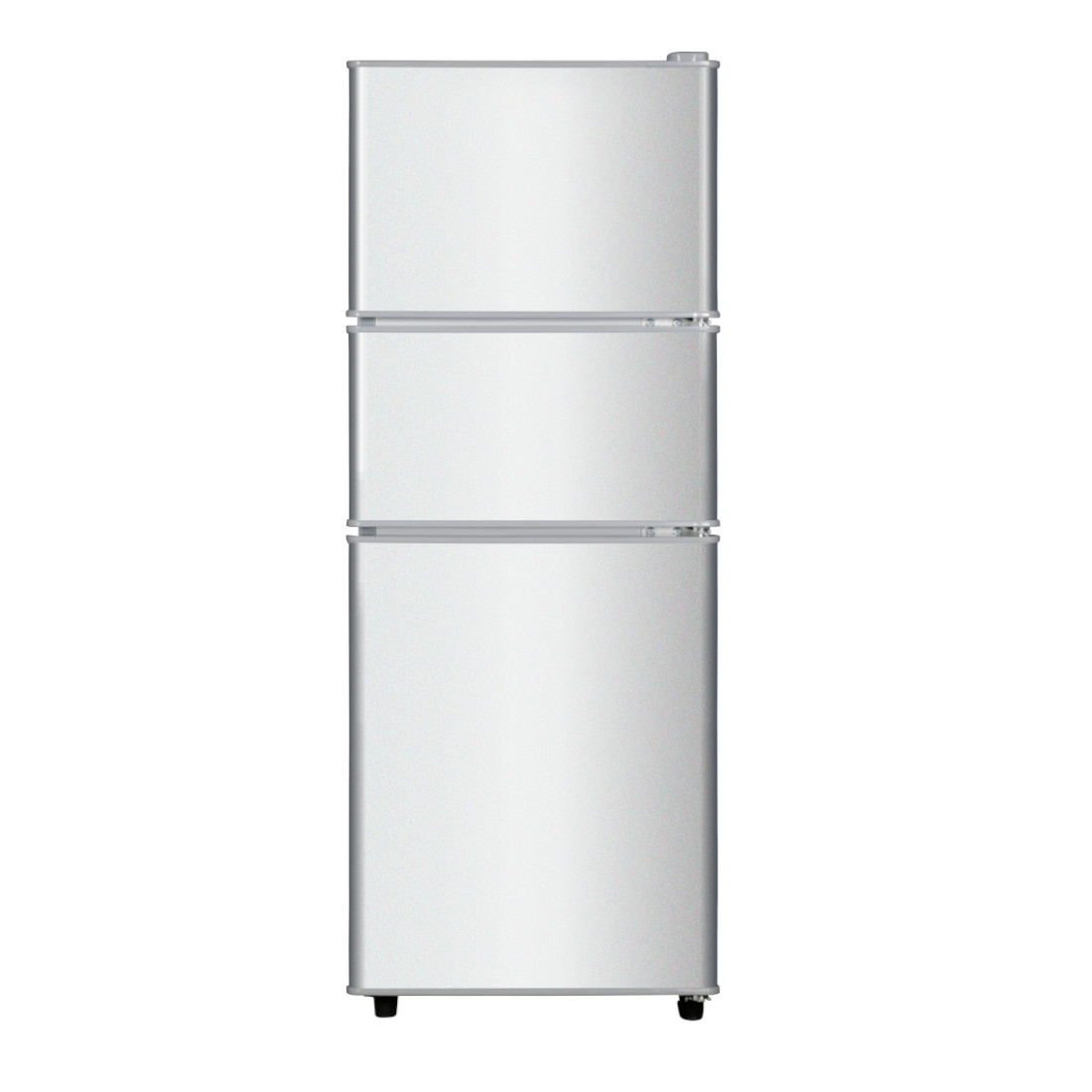 Avec ses trois portes, ce réfrigérateur compact permet de bien séparer les compartiments frais, congélateur et légumes. Idéal pour les cuisines restreintes ou les studios.
